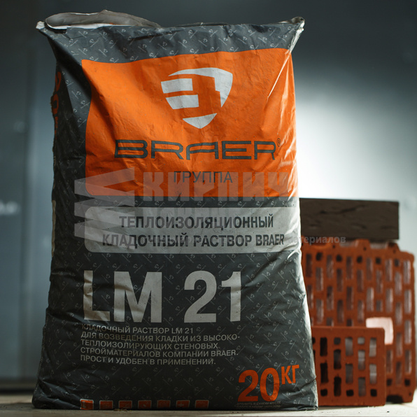 Новый теплоизоляционный кладочный раствор BRAER LM 21 – это уникальное сочетание различных минеральных наполнителей, которые обеспечивают пластичность и легкость материала, сохраняя при этом его долговечность и устойчивость к различным температурным условиям.